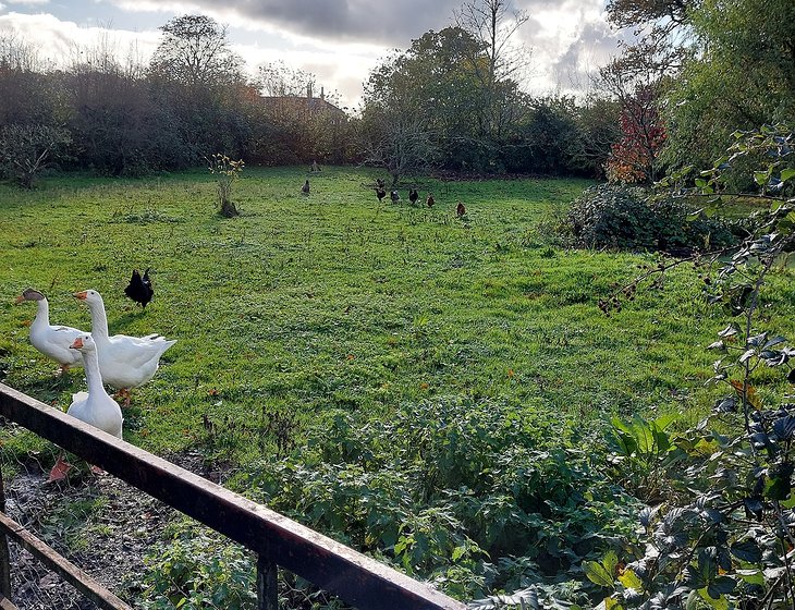 Chickens and geese in separate paddock. Need feeding morning and afternoon and locking up at night.