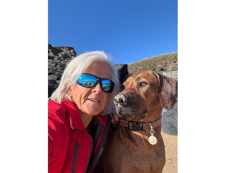 Our girls are Cody, an 20 month Rhodesian Ridgeback who is a canine teenager- full of beans for a while then asleep for 2 hours, and Scout a 15 year old Jack Russell who is as easy as pie and sleeps a lot. Cody has a decent walk each morning and two short outings later in the day, last one at 8pm ish, loves human company and other (friendly) dogs, and is good in the car. Both have a lovely nature and Cody is a big kisser.