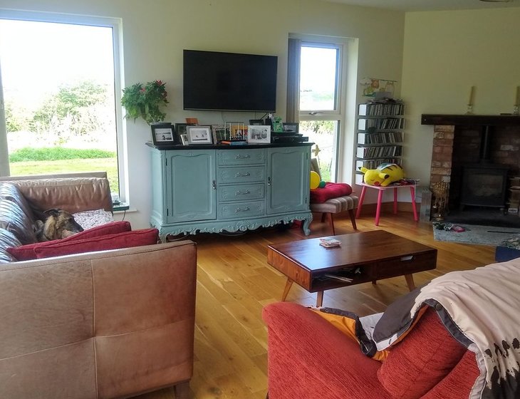 We live in a spacious four bedroom, two storey house on a two acre smallholding in the Co Down countryside. We have three friendly ex battery hens, two turkeys who think they're dogs, two guinea pigs, two kune kune piglets who also think they're dogs and a gentle 11 year old lurcher who loves everyone and walks beautifully on the lead. We also have a polytunnel and vegetable garden.
