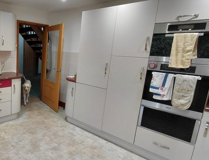 I have a large detached house, private and quiet despite being only a minute from the centre of the pretty market town of Harleston. The house is set in large walled gardens front and back with sliding electric gate to parking for numerous vehicles. There is a large entrance hall, a dedicated drying room, a utility room and separate downstairs loo. The kitchen is well equipped with two fridges, an electric oven, a warming drawer, gas and induction hobs and a dishwasher. The utility room has a washing machine, tumble dryer and freezer.
