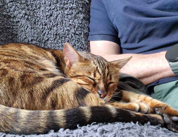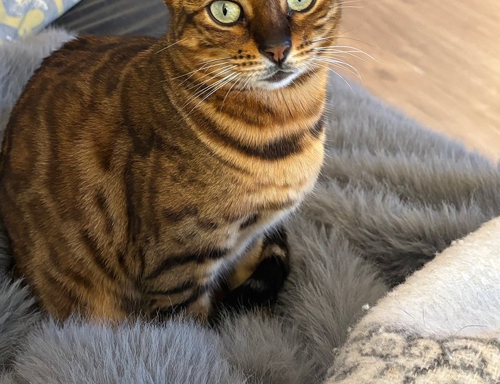 Our other pet is our lovely Bengal cat Minnie age 3 who looks after herself apart from demanding food and cuddles. She has a cat flap so no litter tray and eats dry food so is very easy.