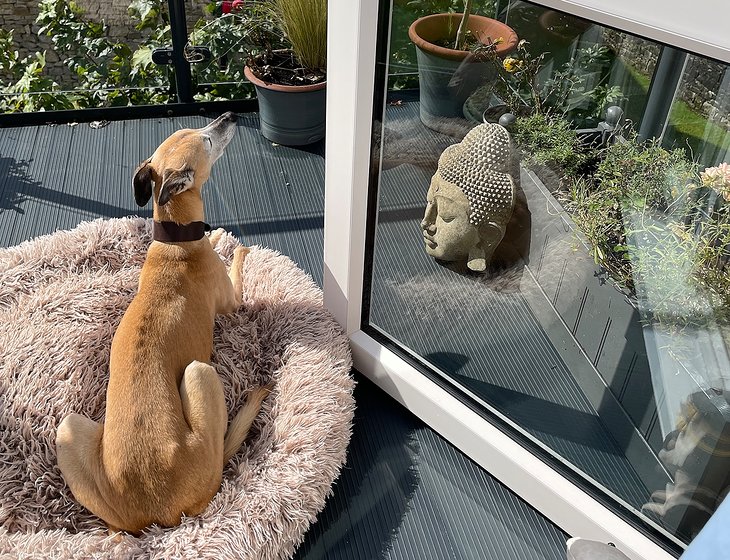 My apartment is quite spacious with 2 bedrooms 1 en-suite 1 bathroom located on 2nd floor. Access to garden is quite easy where I take my doggy which leads onto a river path then takes you into town which is a 5mt walk. Barney is a13yr old whippet and now only walks a very short distance a few times a day. He is on medication twice daily apart from that he has plenty of spirit and enjoys mixing. Everyone loves him he is very gentle and obedient doggy.