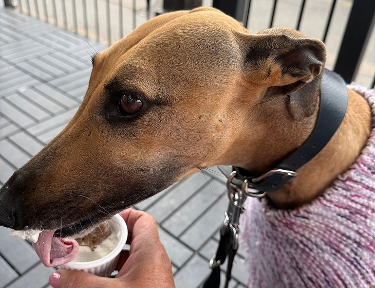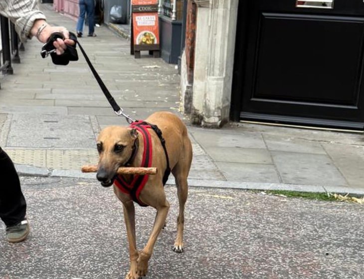 We have a beautiful female lurcher called "Senna" She was a rescue and has the most wonderful nature. She enjoys one to two walks a day and spends the rest of day sleeping. We also have 2 cats, a ginger tom cat "Leo" who is an outside cat. We also have a very elderly cat "Poppy" who stays inside mostly. Both litter trained and no problem with the dog. They all love cuddles.
