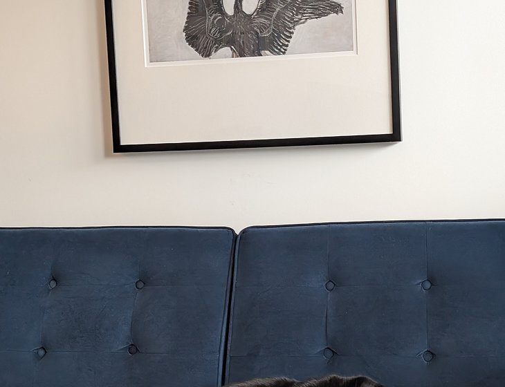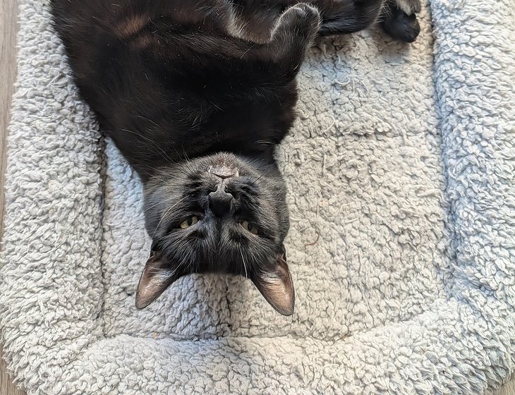 We have fostered a lovely little black cat called Miles who is 1 years old and very cute. He is very shy and low maintenance, but loves play sessions with his shoelace a couple of times a day and of course food/water.