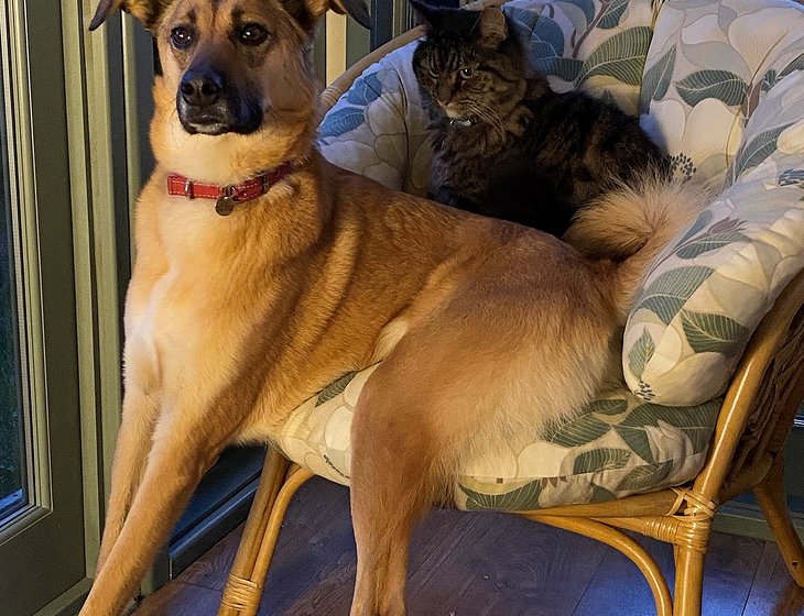 Miro, the 3 legged rescue dog, was a joy, he and Simba, the cuddly cat, were a pleasure to care for. Both such characters, making us smile every day, and very easy to look after; we all enjoyed our cuddles on the sofa each evening.