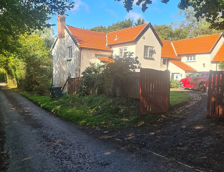 Nice big country home, lovely gardens and fields.