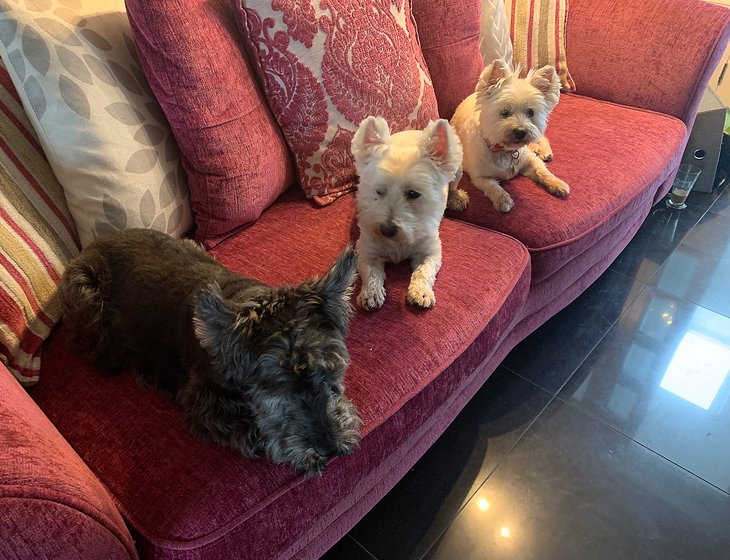 Spacious four bedroom detached suburban house with four small dogs who require a live in sitter when we are away . They all get on and enjoy human company when not sleeping