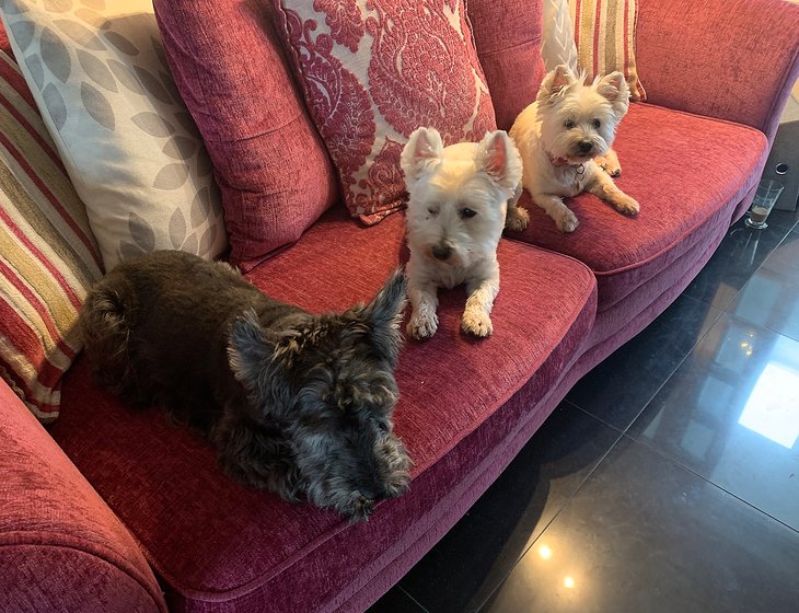 Spacious four bedroom detached suburban house with four small dogs who require a live in sitter when we are away . They all get on and enjoy human company when not sleeping