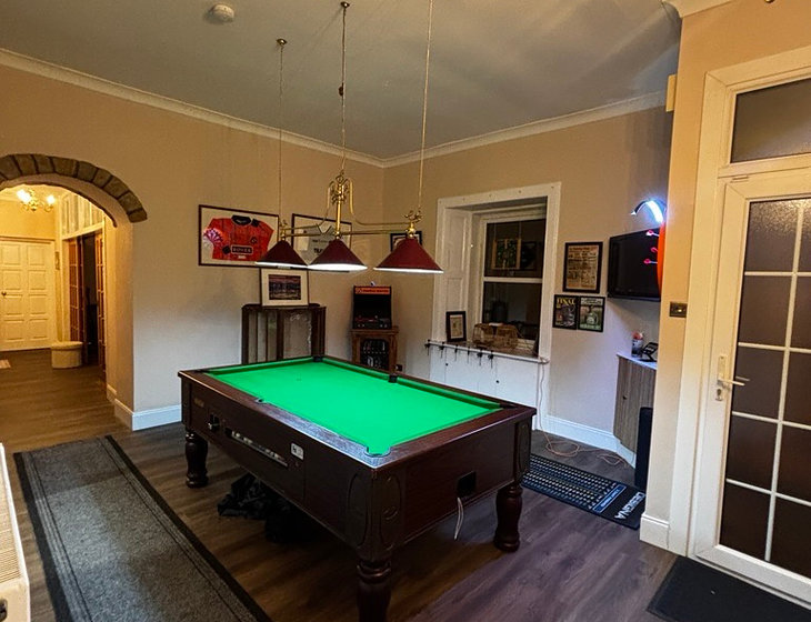 House has a well stocked indoor bar, large garden, 85” telly and extremely fast internet. Games room with interactive darts, pool table.