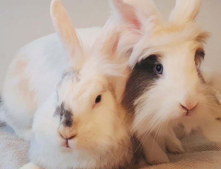 Two lovely dogs: golden retriever and jack russell (2y) and two house-bunnies.