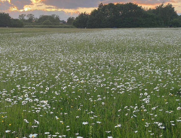 Derrington has a village hall with licensed bar serving the local community and visitors 6 evenings a week. The Derrington Millennium Green borders the village; the 13-acre community owned site consists of wildflower meadows, orchards, pond and woodland. This is in addition to the nearby 23-acre woodland – Duddas Wood, with access to Stafford Castle. The old railway track is now known as the national cycle route 55, running between the green and Derrington, takes you west to Stafford, or east to visit nearby villages Haughton and Gnosall which offer several pubs and further still the Shropshire Union canal. (Pictures show areas of the Millennium Green).