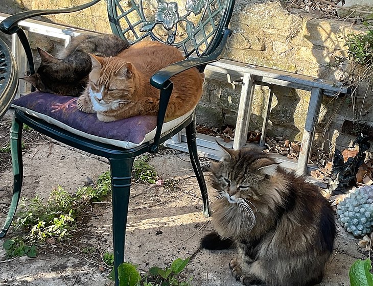 We need cats feeding, boy Maine coon only eats raw and has his own freezer. The girls do not eat his food and love treats… A little watering , the greenhouse trays. All achievable from water hose in garden.