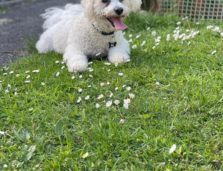 My dog is Bicton frise aged 10 who is frie day,loving and not much care needed.